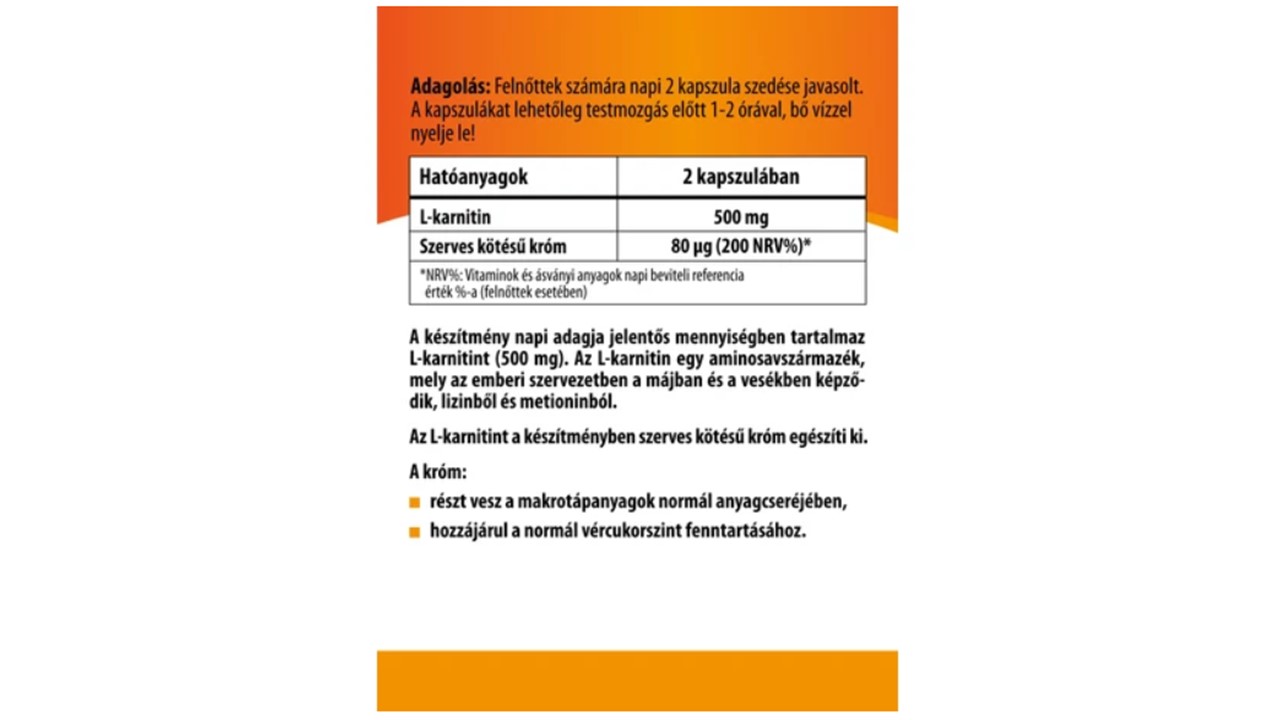 Az L-karnitint a készítményben szerves kötésű króm egészíti ki.