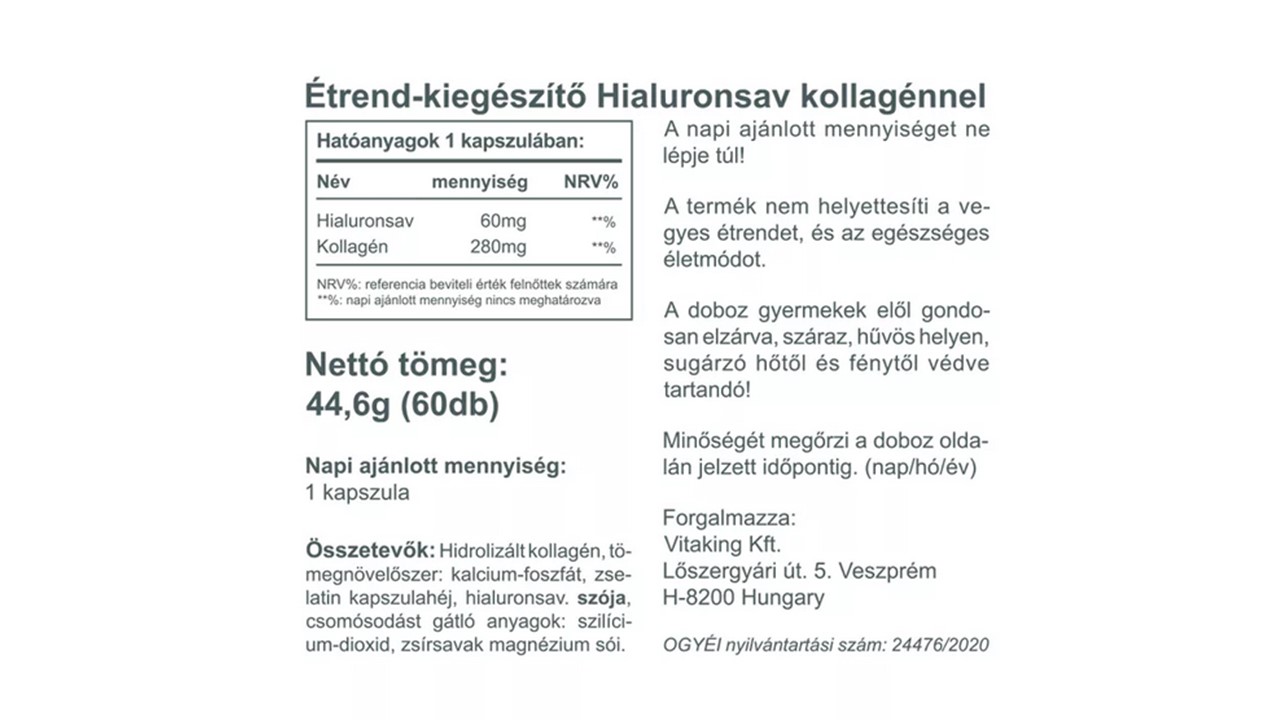A hialuronsav és kollagén a kötőszöveteink legfontosabb építőelemei. Leginkább a sportolók, a fizikai munkát végzők és a 40 év felettiek (40 éves kor felett a szervezetben jelentősen csökken a termelődése) számára igen célszerű ez a kiegészítés.