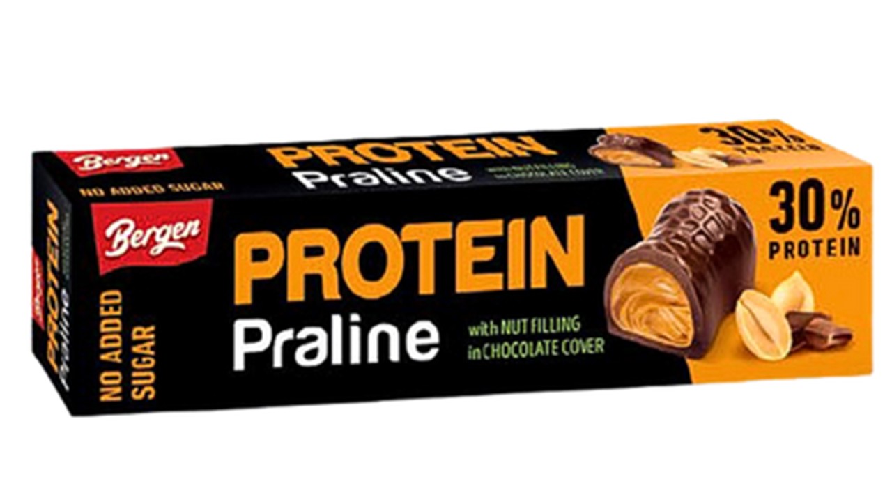 A Bergen Proteines pralinéi 30% protein tartalommal, hozzáadott cukor nélkül készülnek. Csupán az összetevőkben természetes módon előforduló cukrokat tartalmazza. A roppanós tejcsokoládé lágy földimogyoró krémmel van töltve, amely kiváló energiaforrást is biztosít. A doboza 3 darab, földimogyoró alakú, egyesével csomagolt pralinét rejt magában.
