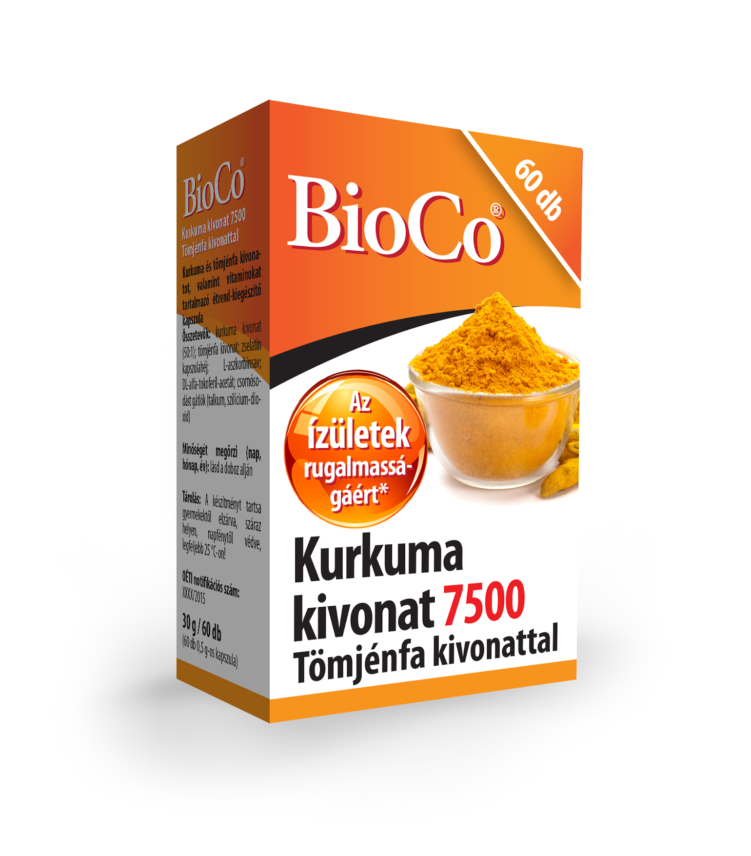 A készítmény gyártásához nem a kurkuma porított őrleményét, hanem annak magas, 50-szeres koncentrációjú kivonatát használjuk. 1 kapszula kivonat tartalma 7500 mg (7,5 g) kurkuma őrlemény pornak felel meg. A kurkuma kivonat mellett a készítményben tömjénfa kivonat (Boswellia serrata) is található, mely nagy mennyiségben tartalmazza a tömjénfa értékes hatóanyagát, a boswellin savat.