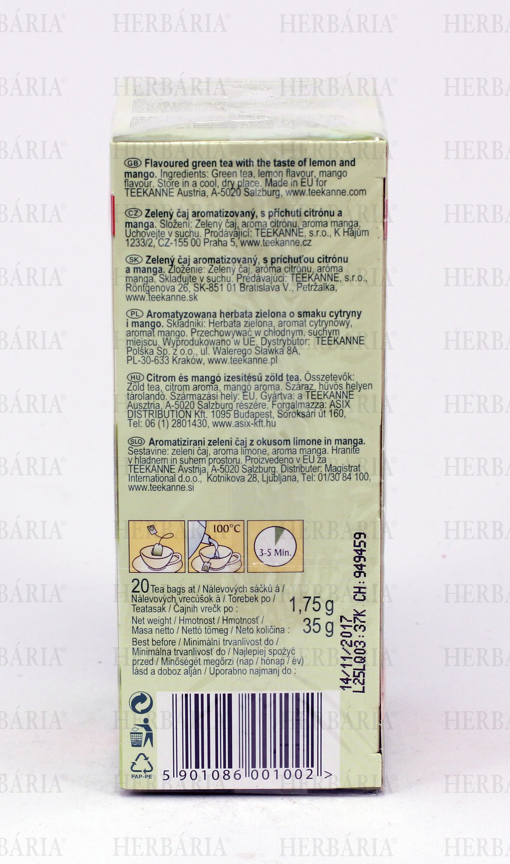 Teekanne zöld tea zen chai citrom és mangó ízesítéssel