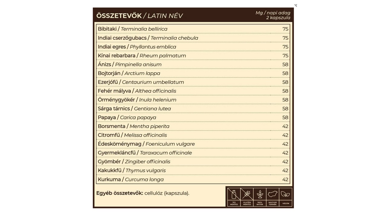 béltisztító gyógynövény-komplex különleges keserűanyagokat tartalmazó