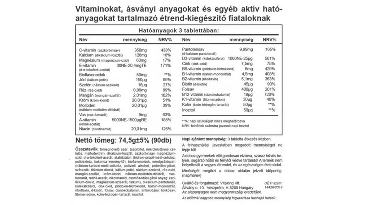Vitaking Mega Vitamin for Teens alkalmazása: