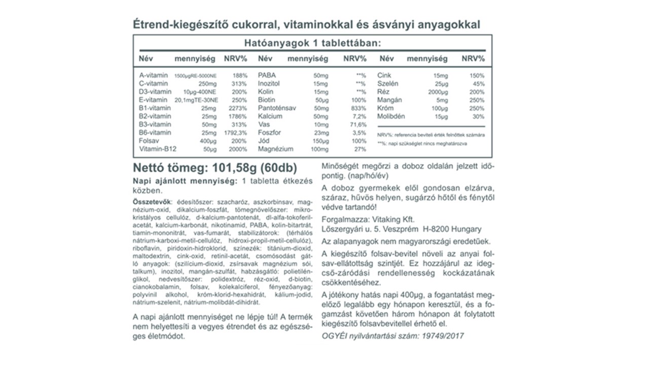 A fogyasztásra ajánlott napi adagot ne lépje túl! Az étrend-kiegészítők az érvényben levő európai uniós szabályozás szerint élelmiszereknek minősülnek, amelyek a hagyományos étrend kiegészítését szolgálják, és koncentrált formában tartalmaznak tápanyagokat. Bár az étrend-kiegészítők kedvező élettani hatással rendelkezhetnek, amely egyénenként eltérő lehet, jelölésük, megjelenítésük, és reklámozásuk során nem engedélyezett a készítményeknek betegséget megelőző vagy gyógyító hatást tulajdonítani, illetve ilyen tulajdonságra utalni. A termék kisgyermekek elől elzárva tartandó!