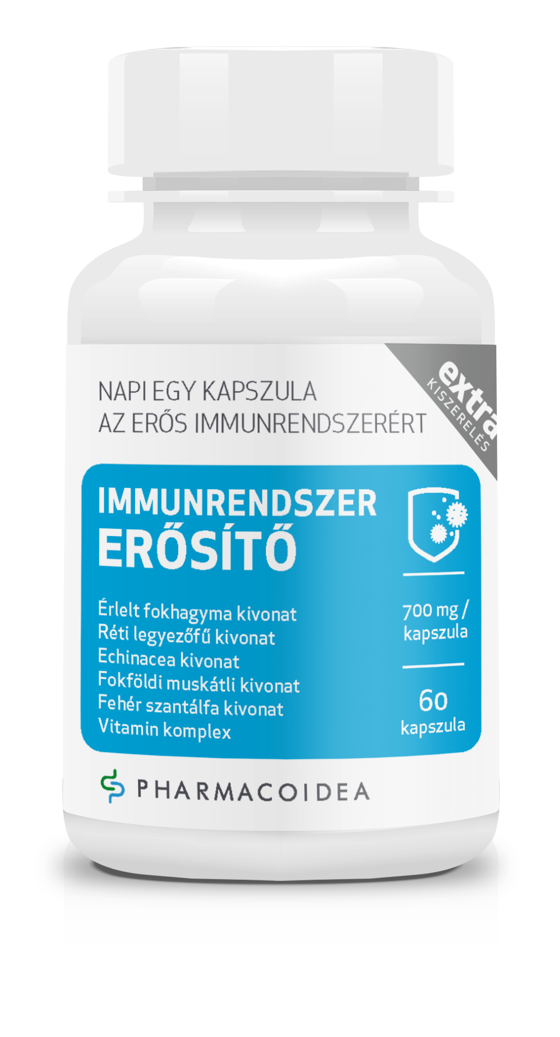 Érlelt fokhagyma, Réti legyezőfű, Bíborlevelű kasvirág, Fokföldi muskátli, Fehér szantálfa és vitaminok az immunrendszer és a felső légutak egészségéért. A fáradtságérzés csökkenéséhez, a sejtek oxidatív stresszel szembeni védekezéséhez. Támogatja a szervezet ellenállóképességét,és a normál nyálkahártyák fenntartását.
