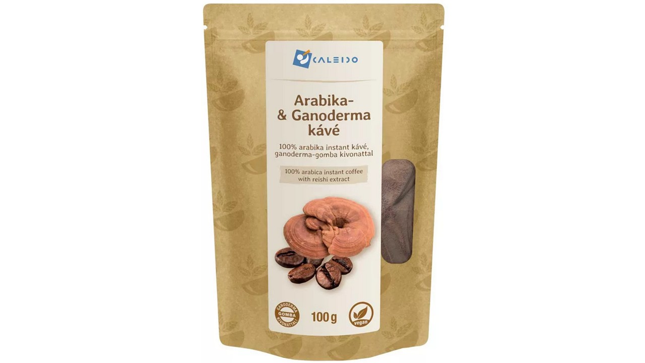 A Caleido Arabika- és Ganoderma kávé, méltányos kereskedelemből (Fair Trade) származó első osztályú biotermesztésű 100% arabica instant (azonnal oldódó) kávét és 20% Ganoderma Lucidum gombát tartalmaz, 30% poliszacharid tartalommal. Ízében és a szervezetre gyakorolt pozitív élettani hatásaiban is kiváló.