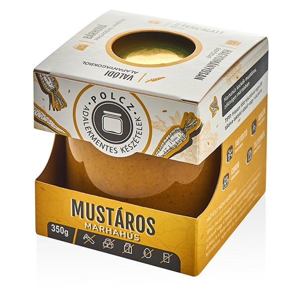 marhacomb (36%), sárgarépa (32%), petrezselyemgyökér (9%), vöröshagyma, ivóvíz, mustár (4%) /ivóvíz, sárgamustármag, biológiai erjesztésű ecetek, természetes édesítőszer: sztívia, Parajdi só, fűszerek/, kókuszolaj, barna rizsliszt, étkezési só, fűszerek