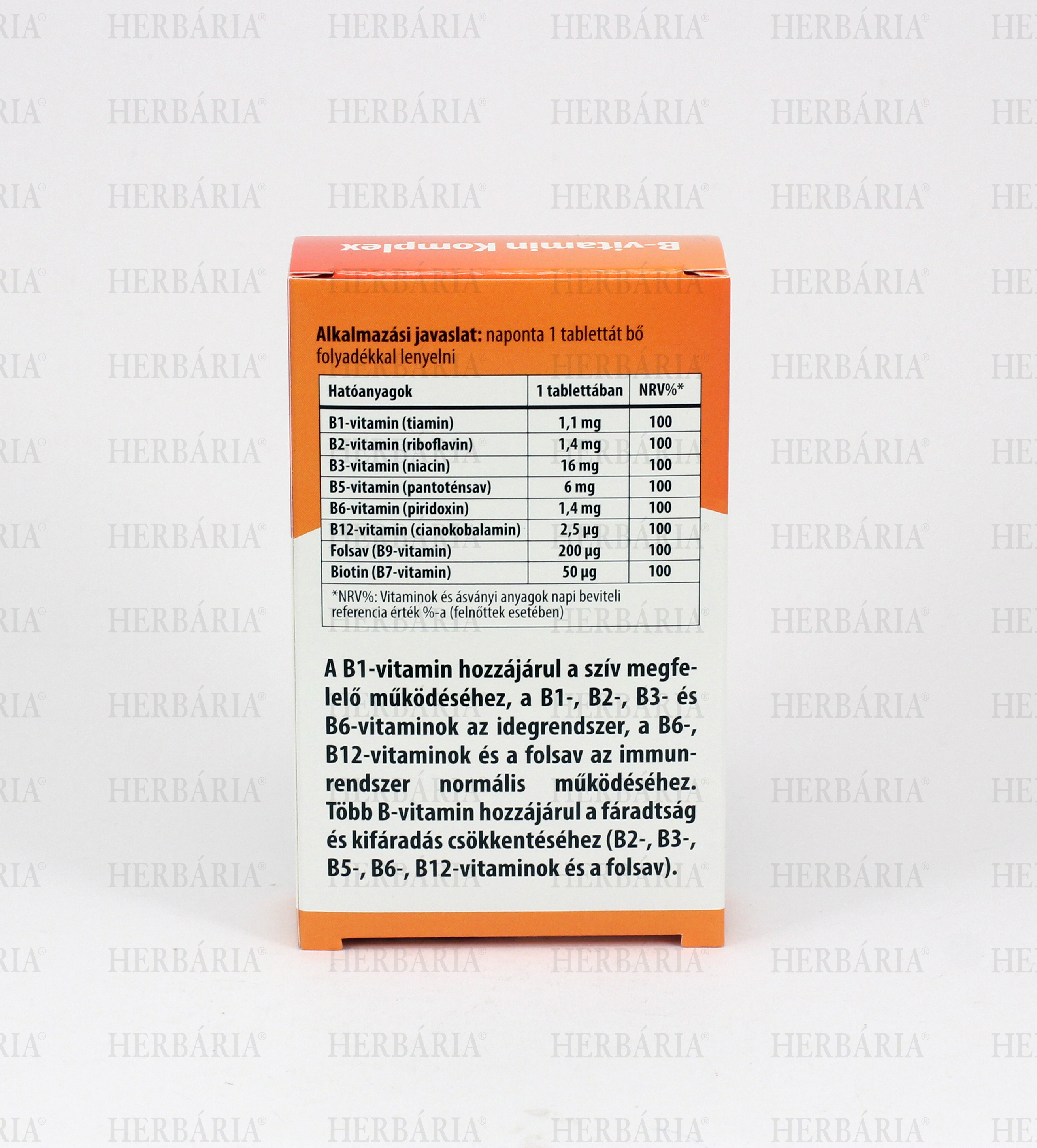 A B1-vitamin hozzájárul a szív megfelelő működéséhez, a B1-, B2-, B3- és B6-vitaminok az idegrendszer, a B6-, B12-vitaminok és a folsav az immunrendszer normális működéséhez. Több B-vitamin hozzájárul a fáradtság és kifáradás csökkentéséhez (B2-, B3-, B5-, B6-, B12-vitaminok és a folsav).