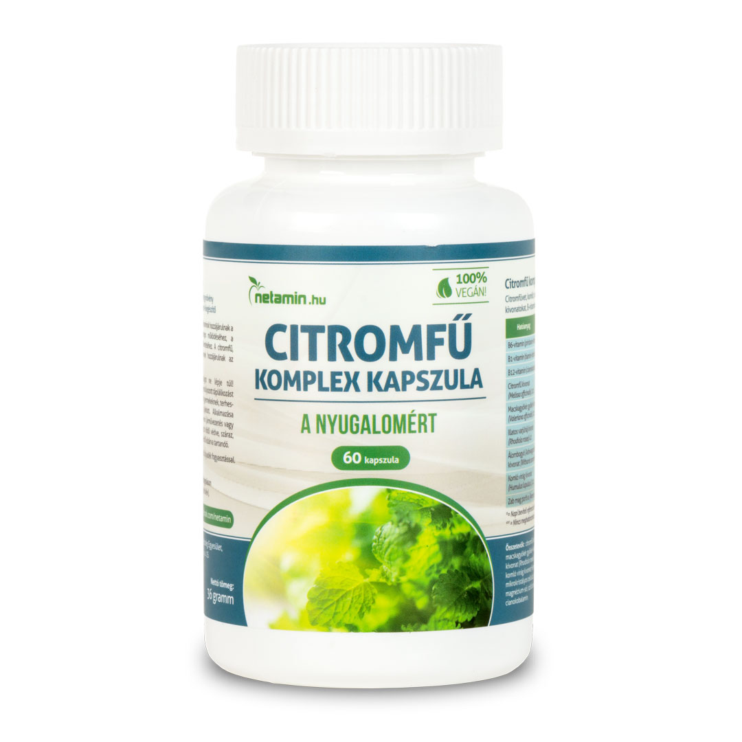 A Netamin Citromfű Komplex 6-féle gyógynövény és 3-féle B-vitamin kombinációjával segíti, hogy nappalaid és éjszakáid is nyugalomban teljenek. A napi adag (1 kapszula) a következő összetevőket tartalmazza: