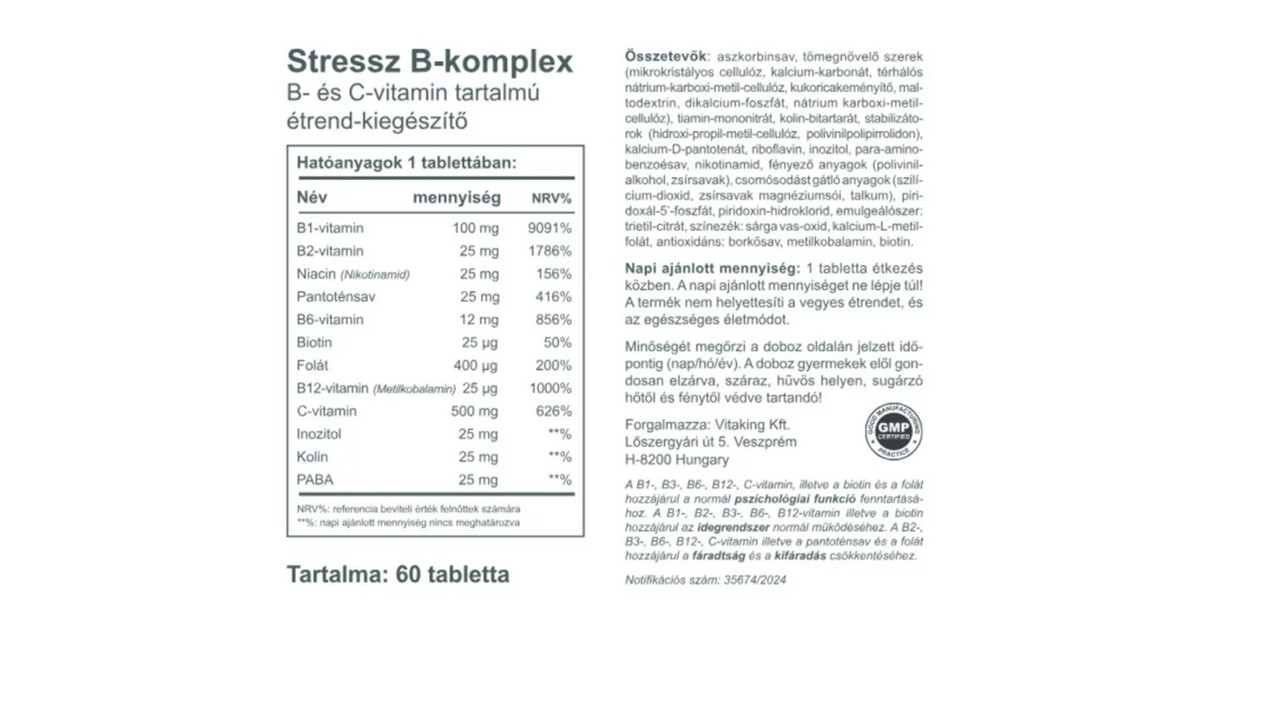 Vitaking Stressz B-Komplex Tabletta