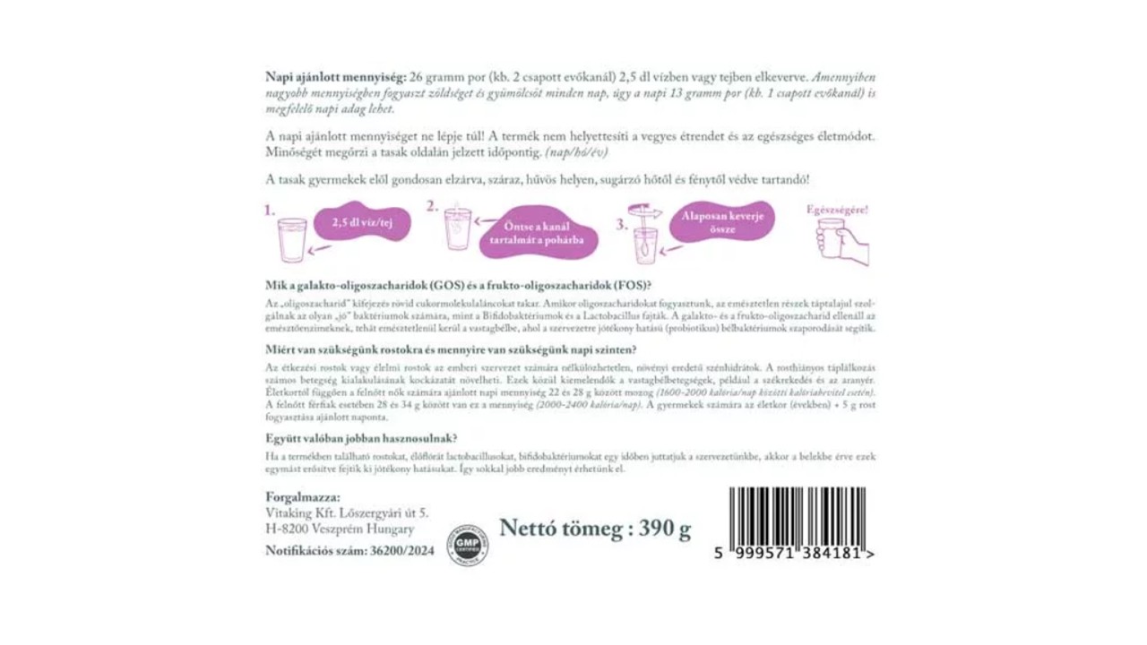 frukto-oligoszacharidok (FOS, vízoldékony rostok) garantálják, amelyek