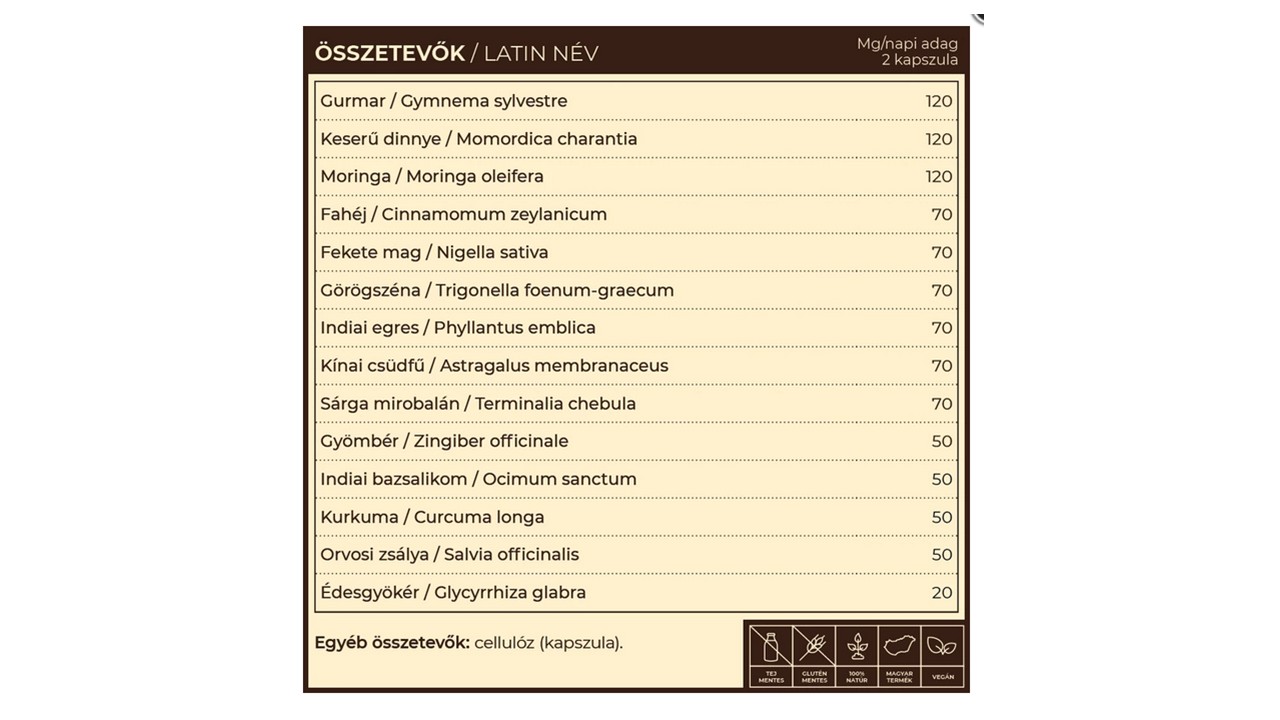 különleges gyógynövény-komplex gurmart, keserű dinnye, fahéj és